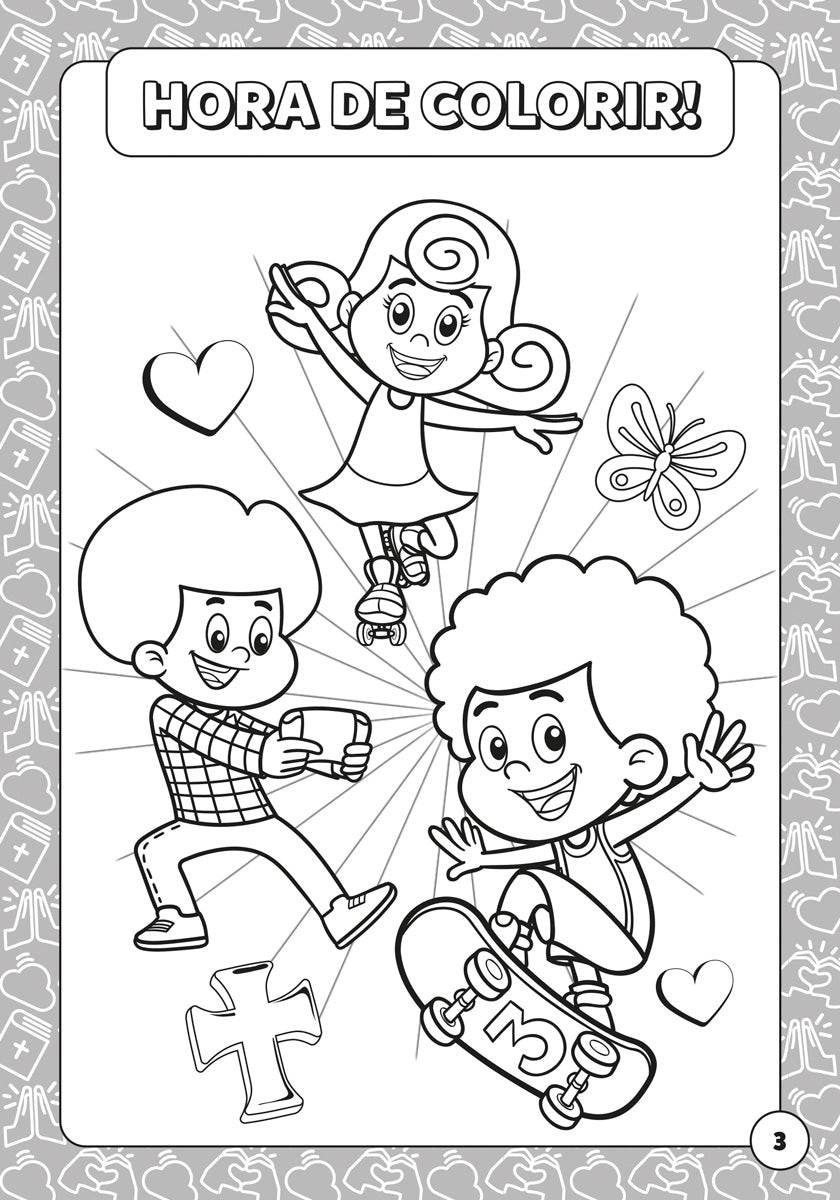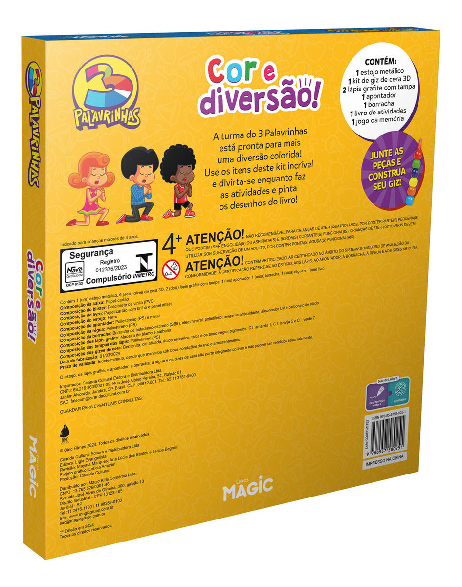 A turminha do 3 Palavrinhas já está pronta para mais uma diversão colorida! Use os itens deste kit incrível e divirta se enquanto faz as atividades e pinta os desenhos do livro!