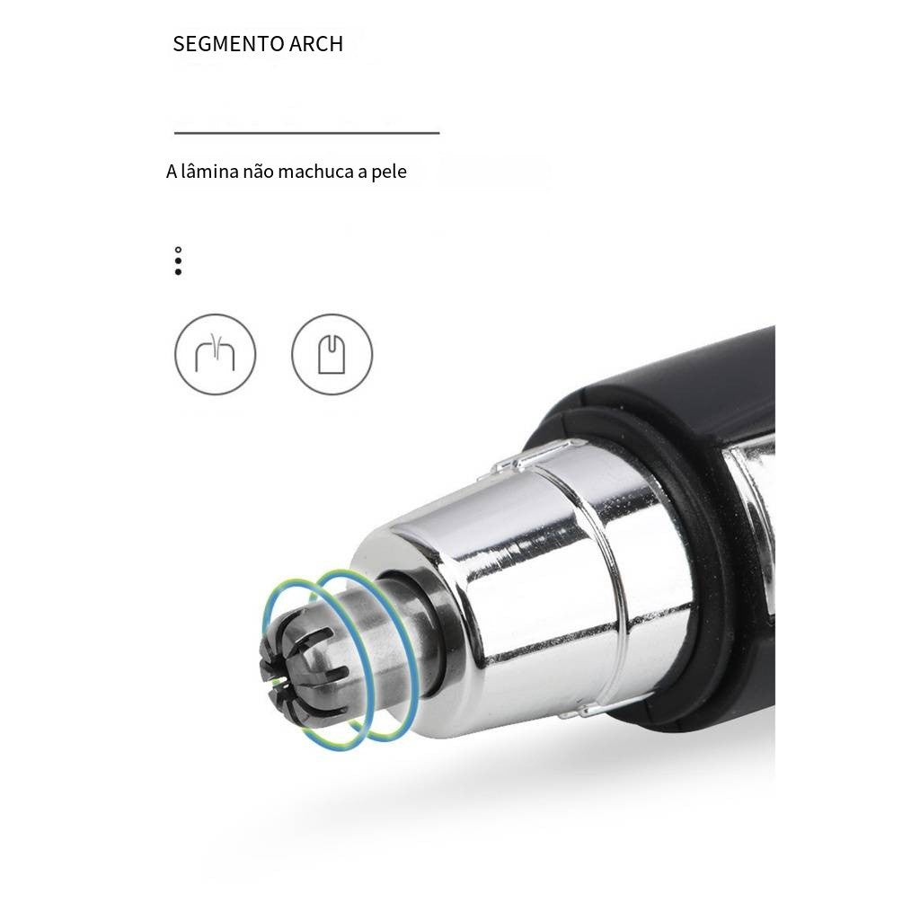 Podendo ser usado para aparar pelos no nariz, orelhas, sobrancelha etc.