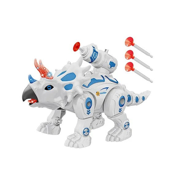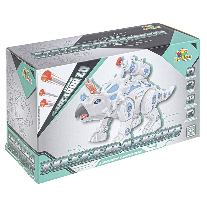 Compre Dinossauro Triceratron Anda Lança Dardos Som Luz Original artbrink na Shopee Brasil! Apresentamos o incrível Dinossauro Robô Lançador de Dardos da marca Art Brink. Recomendado para crianças a partir de 3 anos, este brinquedo da franquia Zein é perfeito para estimular a imaginação e a diversão. Com suas funções de andar, emitir som e luz, além de lançar dardos, o Dinossauro Robô proporciona uma experiência única de brincadeira. Seu formato de dinossauro torna-o ainda mais atrativo para os pequenos. Não perca a oportunidade de adquirir este divertido brinquedo para presentear ou para completar a coleção.