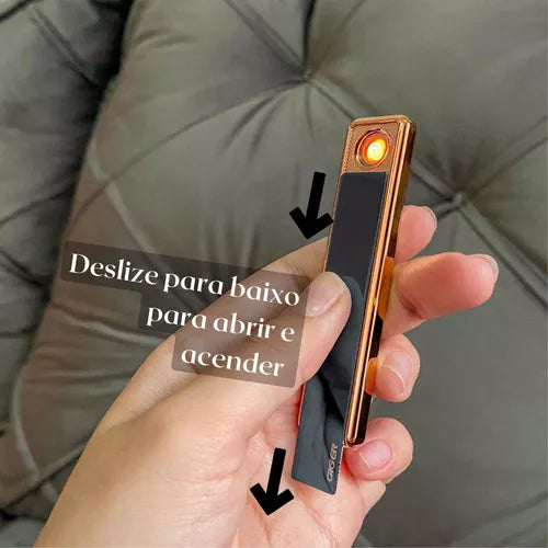 Quer se destacar com um isqueiro eléctrico de design moderno, sofisticado e prático? Recarregável através de um cabo USB (incluído), você pode recarregá-lo facilmente no carro, no computador, em dispositivos móveis ou na tomada usando a fonte de alimentação do seu celular. Além disso, você não precisa se preocupar com o vento, pois a resistência acenderá independentemente destas condições! Lindo e prático