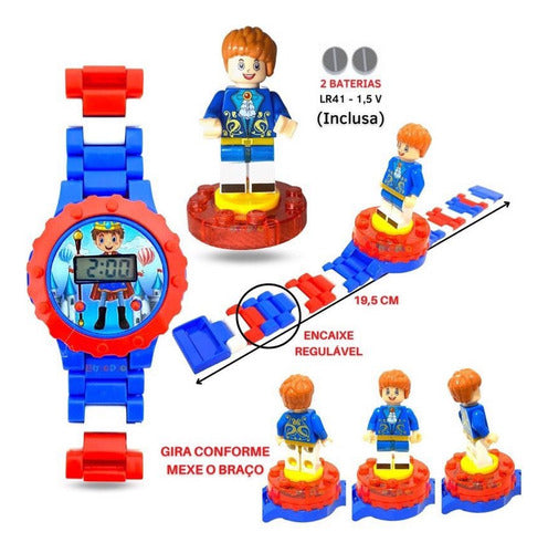 RELÓGIO DE PULSO INFANTIL COM BONECO BLOCO DE MONTAR