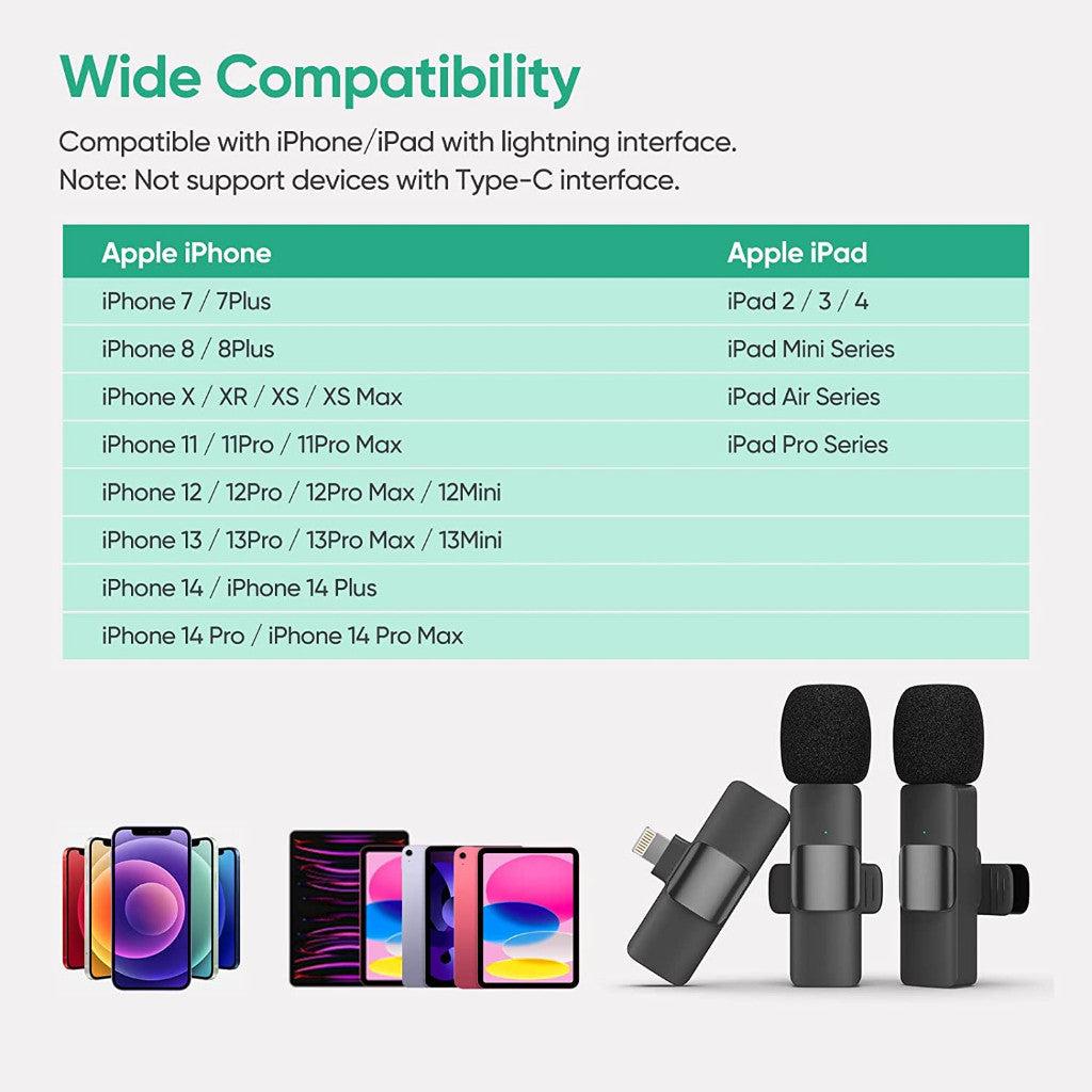 Compre Microfone de Lapela Sem Fio K9 Vlog Compatível TipO iPhone Brasil! Descrição do produto em inglês após português Características: Latência ultrabaixa de 1,9 ms, recepção sem barreira de 20 m, pode usar transmissão ao ar livre ao ar livre e tirar um pequeno vídeo. 2.Não precisa de APP, plugue e play, conexão com um clique, fácil de usar. 3.Redução inteligente de ruído, longa resistência de 10 horas, fácil de lidar com todos os tipos de ambiente barulhento, tiro sem preocupações, atende às suas necessidades por um dia. 4.360 apontamento completo pegar, gravar cada detalhe do som. 5.Pequeno e conveniente, é compatível com vários dispositivos, suporte para celular, tablet, câmera, notebook, etc. Especificação: Tensão de entrada: DC4,8-5,4V Porta de carregamento: para relâmpago/para Tipo-IPHONE Capacidade da bateria: 80mAh Distância de transmissão: barreira de 8 m, sem barreira de 20 m Tamanho do microfone: 62*23 * 28mm Peso do microfone: 7g Tamanho do receptor: 45*27 * 7mm Peso do receptor: 4g Incluído no Pacote: 1 x Microfone Sem Fio Recarregável 1 x Receptor 1 x Manual de Inglês 1 x cabo USB Audio Compatibility:Mobile Model Name:K9 Registration ID:156882114323 Manufacturer:Guangzhou Senertong Electronic Technology Co. Connection Type:Wireless